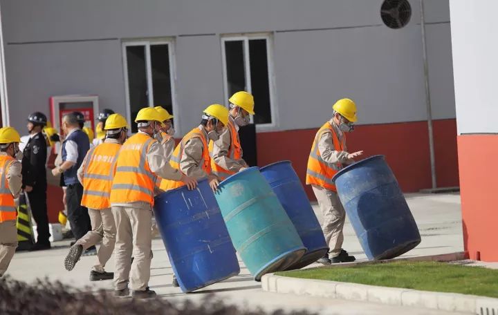 此次演練是一場模擬生產過程中危險化學品泄漏造成火災事故后的綜合應急演練,采用貼近實戰演練的模式。